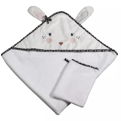 Idéal pour un cadeau de naissance, cette jolie parure de bain Miss Fleur de Lune en blanc et rose accueillera et réchauffera bébé au sortir du bain !